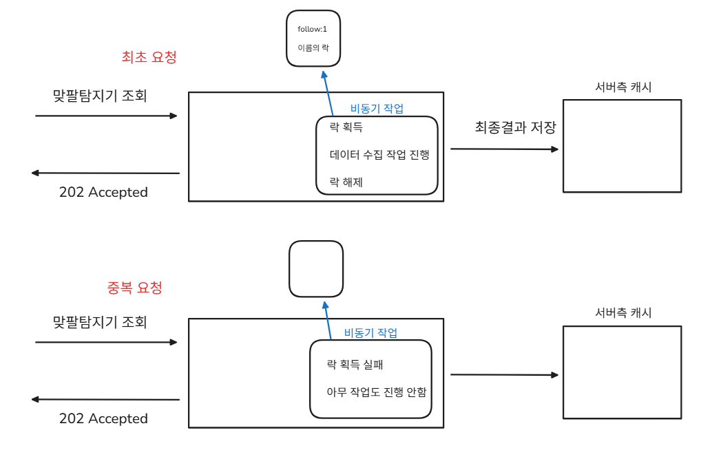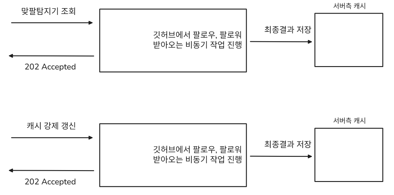 어떤 사용자가 최초로 맞팔탐지기 조회 요청을 하게 되면, 실제 응답을 위해 데이터를 받아오는 데 5초 정도의 시간이 걸린다고 가정했다.