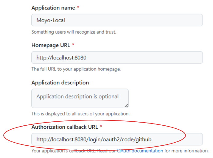 GitHub OAuth 앱을 등록할 때 설정한 callback URL은 사용자가 GitHub에서 로그인을 완료한 후 인증 코드를 가지고 리다이렉트되는 redirect_uri다. 이 redirect_uri는 기본적으로 /login/oauth2/code/* 형식으로 맞춰야 Spring Security의 OAuth2LoginAuthenticationFilter가 요청을 처리할 수 있다. 물론 위의 경로는 원하는 경로로 커스터마이징 가능하다.