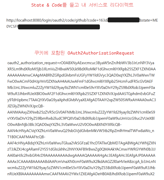 이제 사용자가 정상적으로 GitHub에서 로그인하면, 사용자는 Authorization Code, 내가 발급한 쿠키, GitHub에서 제공한 임시 인증 코드, 그리고 state 파라미터를 함께 포함하여 내 서버로 리다이렉트된다.