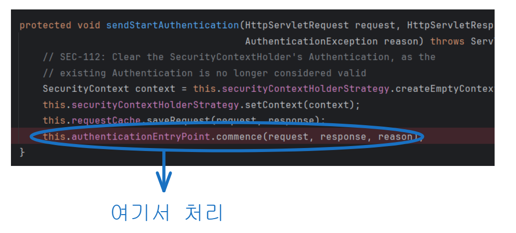 이를 따라가 보면 AuthenticationEntryPoint에서 처리 되는 것을 알 수 있다. 따라서 이 부분도 따로 커스터마이징을 진행했다.